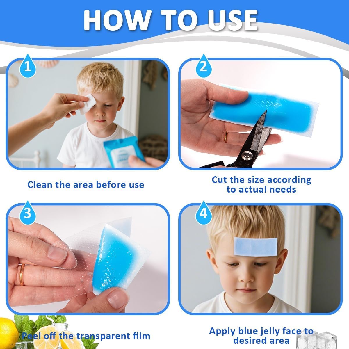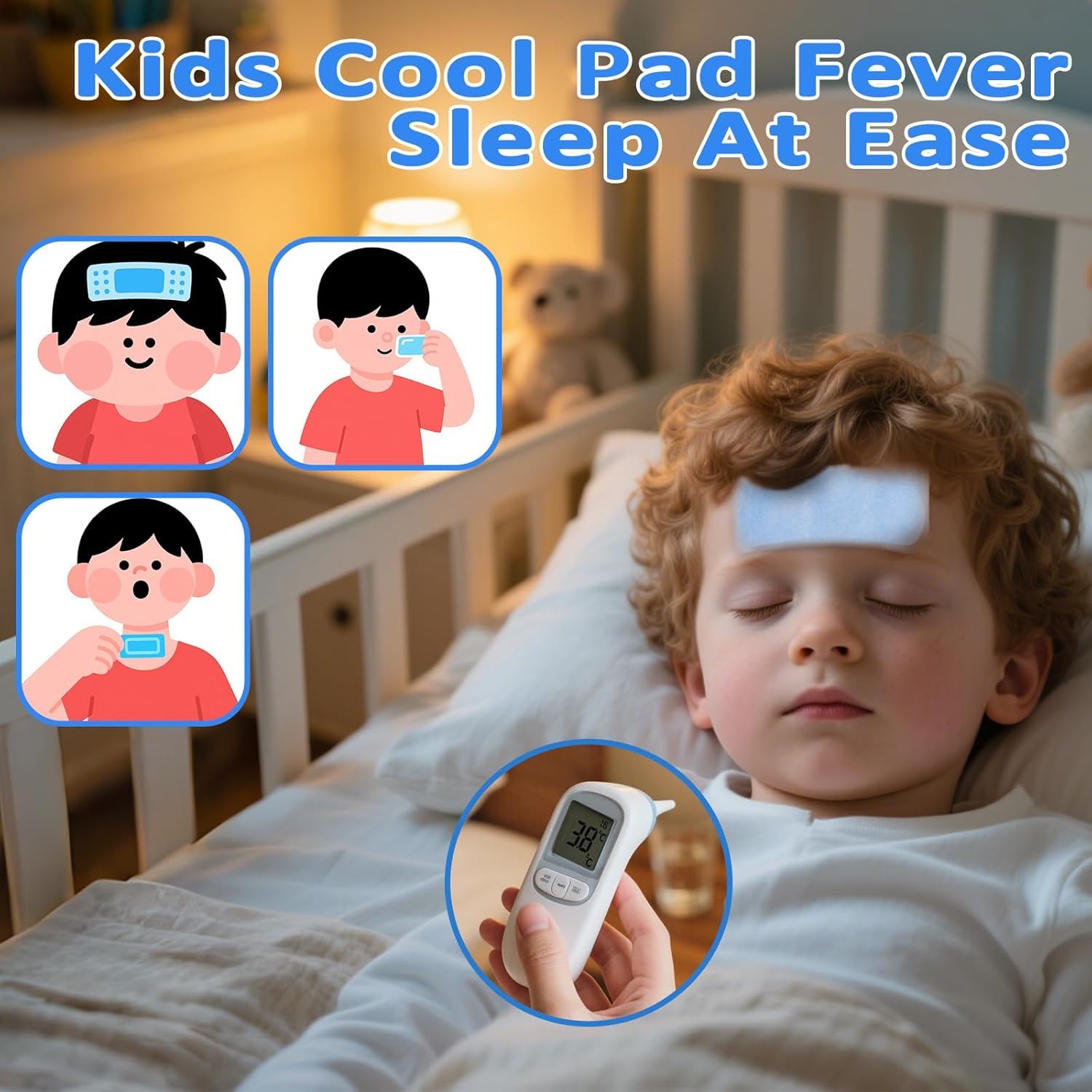 UCRAVO 10 pcs Kids Cooling Patches for Fever Discomfort Pain Relief Reducer Soothe Headache Forehead Strips Gel Sheet Toothache Drowsiness Fatigue Refreshing Sunstroke Good for Cooling - Men Women