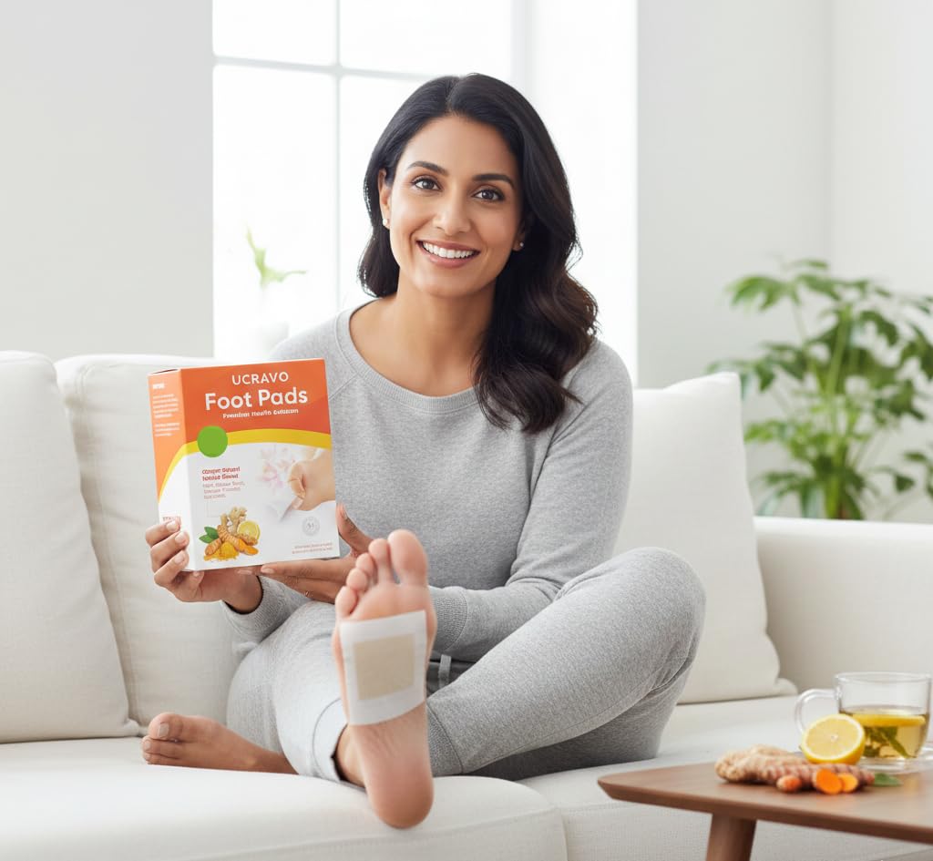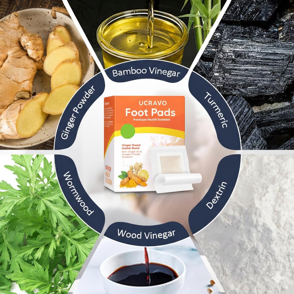 - πΏ Advanced Ginger-Based Herbal Detox Foot Pads for Night Use:-UCRAVO detox foot pads are crafted with a premium ginger-based herbal blend including ginger root, vinegar powder, and curcumin, commonly used in traditional foot care routines. These herbal detox foot patches are designed for overnight use to support foot relaxation, soothing comfort, and natural wellness while you sleep.