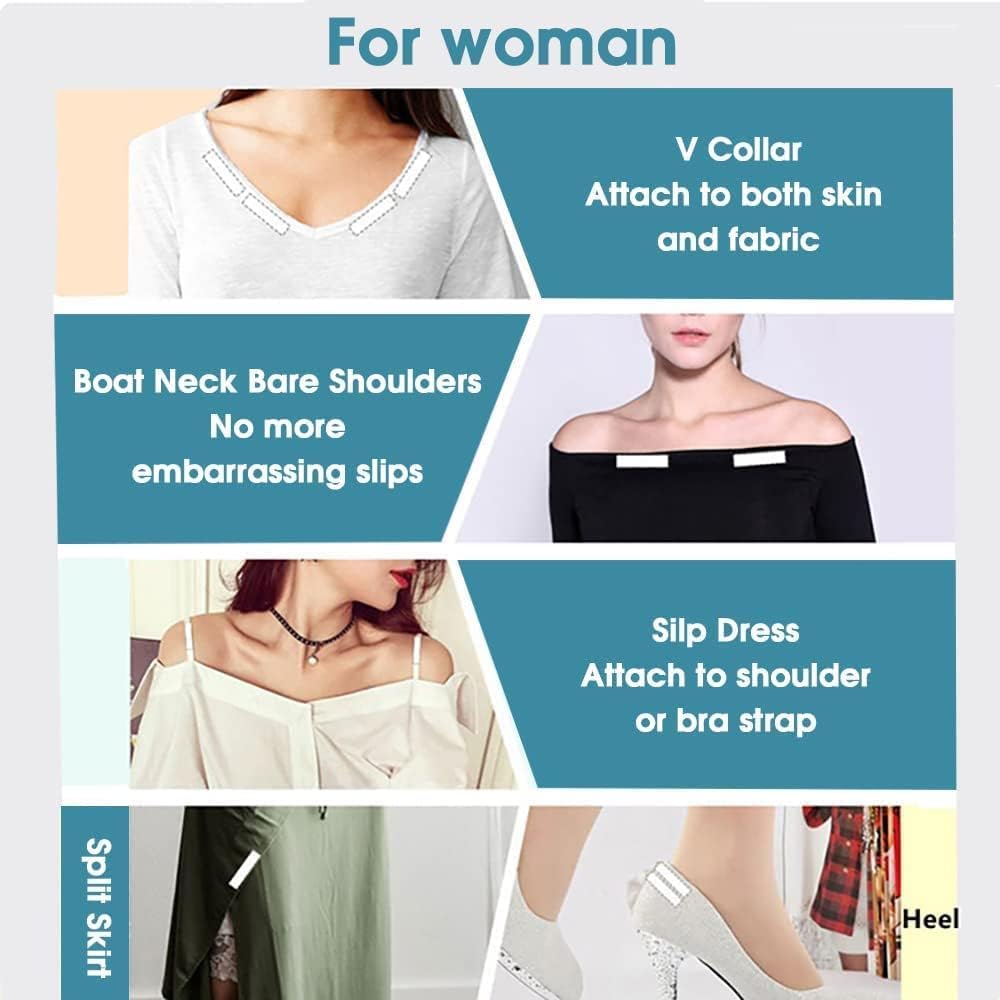 - FASHION TAPE FOR WOMEN: Commonly Used to Prevent Wardrobe Malfunctions, This Tape Can Secure Clothing in Place, Especially for Dresses, Blouses, or Low-Cut Tops. Dress & Clothing Tape Helps Keep Straps, Dresses, and Other Garments from Shifting or Falling Out of Place.