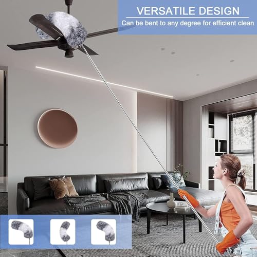 - 📏 Extra Long 100 Inch Extendable Handle for Hard-to-Reach Areas – The strong stainless steel telescopic pole extends up to 100 inches, making it easy to clean high ceilings, ceiling fans, chandeliers, AC vents, tall wardrobes, curtain rods, and corners without using ladders or stools. Perfect for home, office, and commercial cleaning.