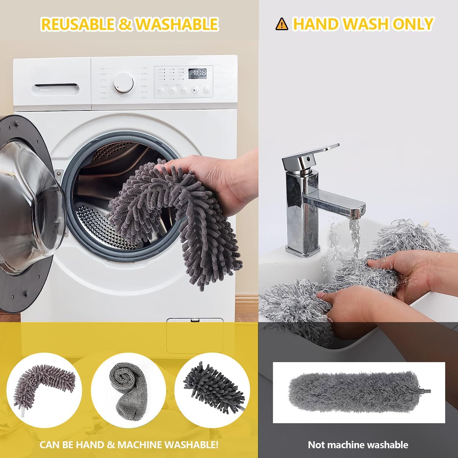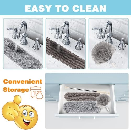 - 💧 Washable, Reusable & Eco-Friendly Dusters – Made with premium microfiber material, the duster heads attract and lock dust, dirt, and cobwebs without spreading. They are detachable, washable, and reusable, saving money on disposable dusters and making them eco-friendly and durable for long-term use.