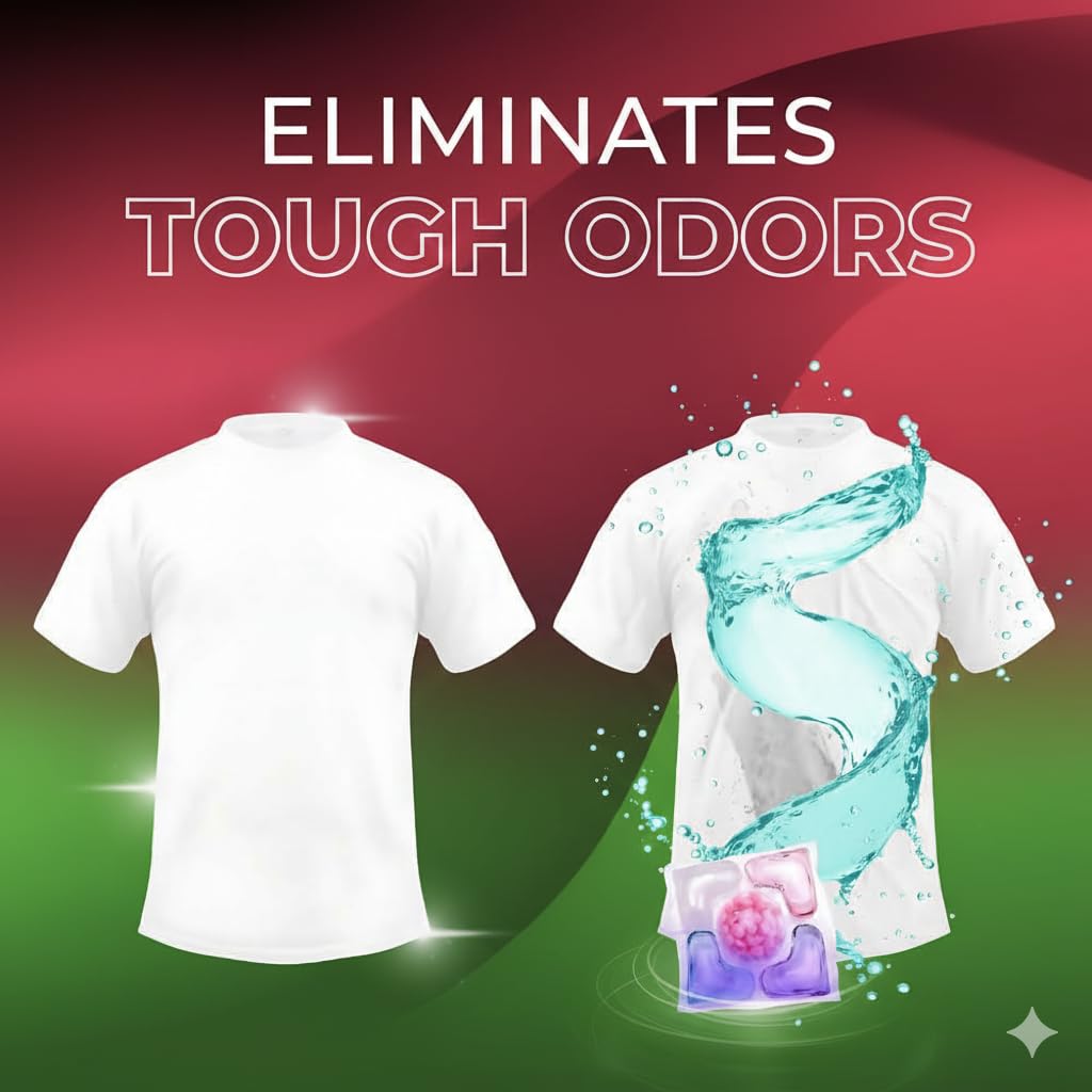 - 🧼 Strong Stain Remover Washing Capsules for Tough Dirt & Grime: These high-performance detergent capsules effectively remove a wide range of common and tough stains, including embedded oil, grease, heavy sweat marks, stubborn mud, food stains, makeup marks, and daily dirt. They work to keep all your garments clean, bright, and smelling fresh with odor control action.