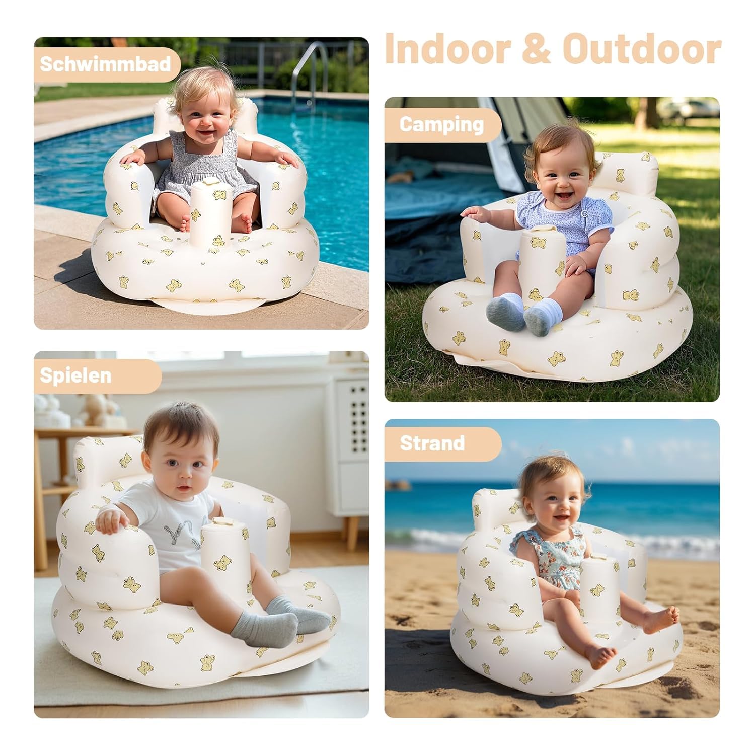 - ✔ ADORABLE DESIGN, EASY CLEANING & DAILY CONVENIENCE:-Featuring a cute printed design that attracts babies’ attention, this baby inflatable sofa also enhances nursery décor. The waterproof surface allows effortless cleaning after feeding, drooling, or playtime. Simply wipe with a damp cloth to keep it fresh and hygienic.