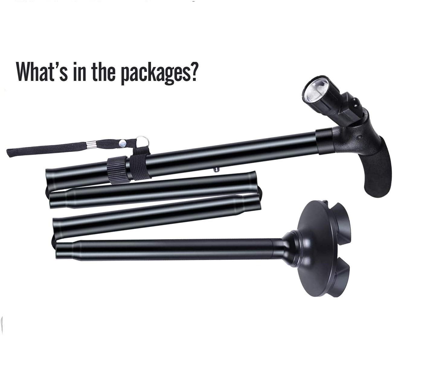 UCRAVO Freedom Edition Foldable Walking Cane with LED Light, Adjustable Height, Quad Cane Tip, Lightweight, Portable, Self Standing Walking Stick for Men & Women