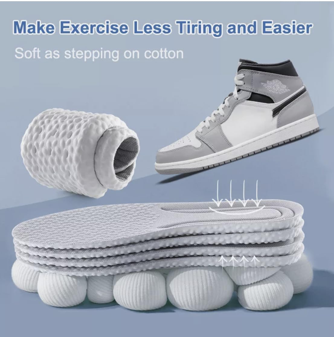 - 💨 Breathable, Sweat-Absorbing & Odor-Free Material: Built with ventilated mesh fabric and anti-sweat breathable lining, these odor-control insoles keep feet cool, dry, and fresh even after long hours of wear. Ideal for people with active lifestyles, athletes, and office workers who want clean, dry, and odorless shoes all day long.