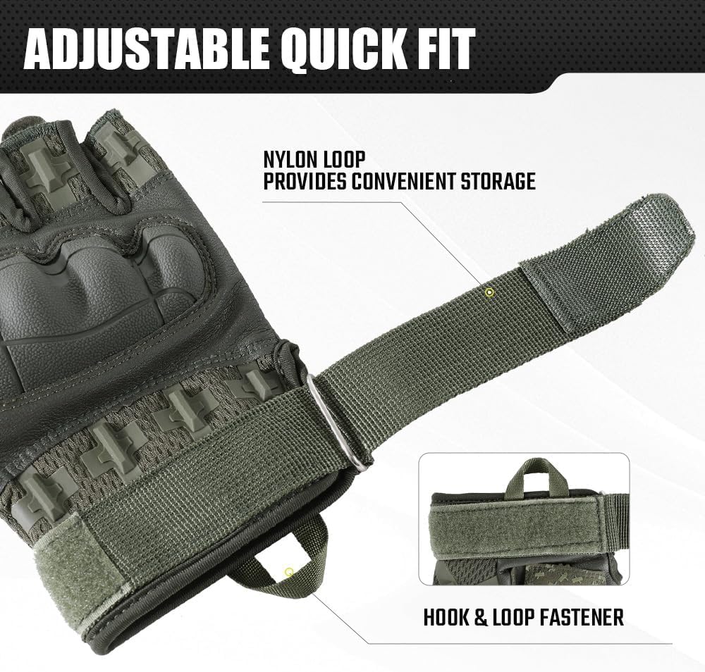 UCRAVO Motorcycle Riding Gloves for Men with Rubber Knuckle Protection Tactical Half Finger Anti-Slip Bike Gloves for Motorbike Riding, Cycling,Scooter,Touring,Racing,Off-Road & Summer Riding