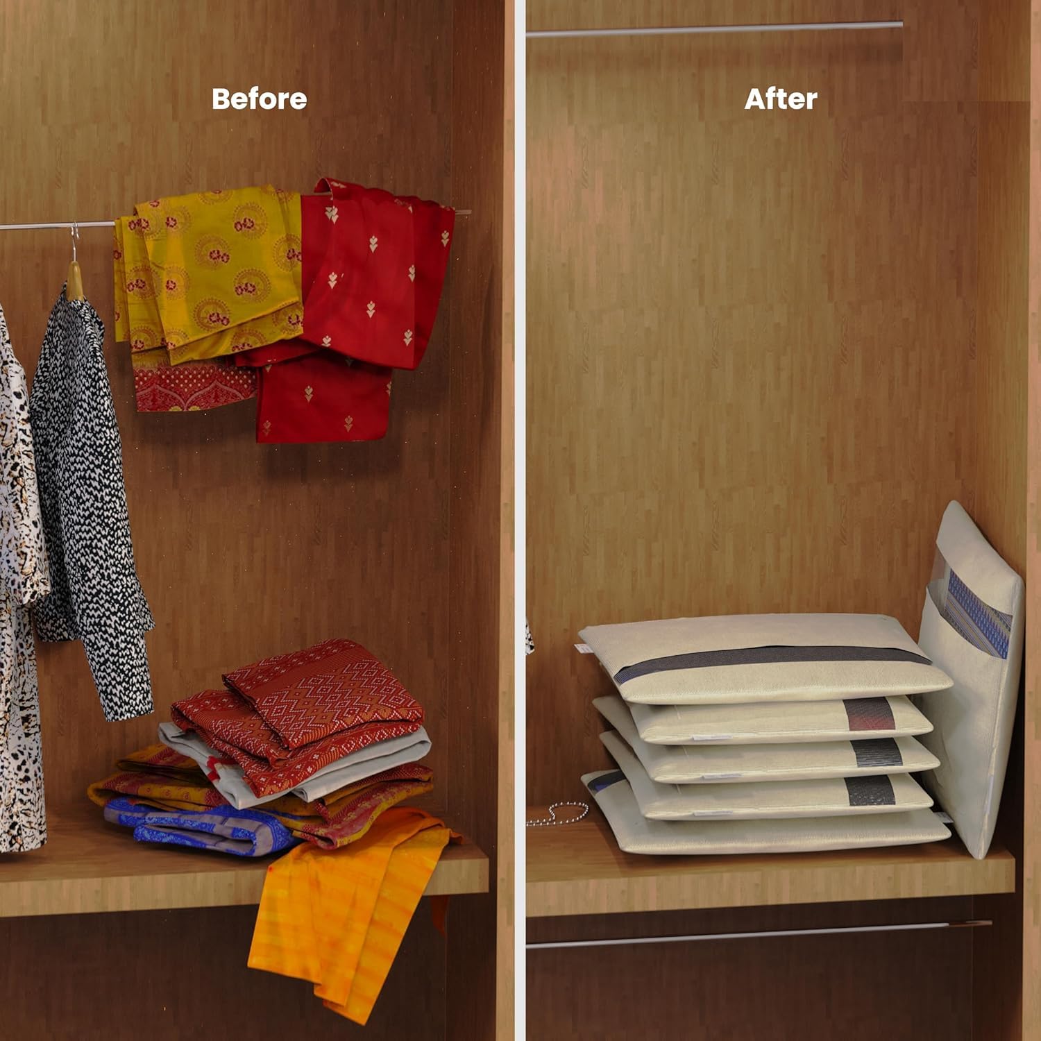 - Durable Cotton Canvas Material: Crafted from premium quality cotton canvas, these saree organizers for wardrobe are designed to withstand daily use while retaining their shape and protecting your valuable clothing items to ensure longevity
