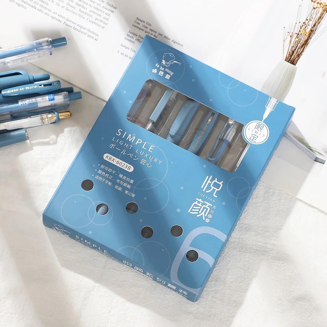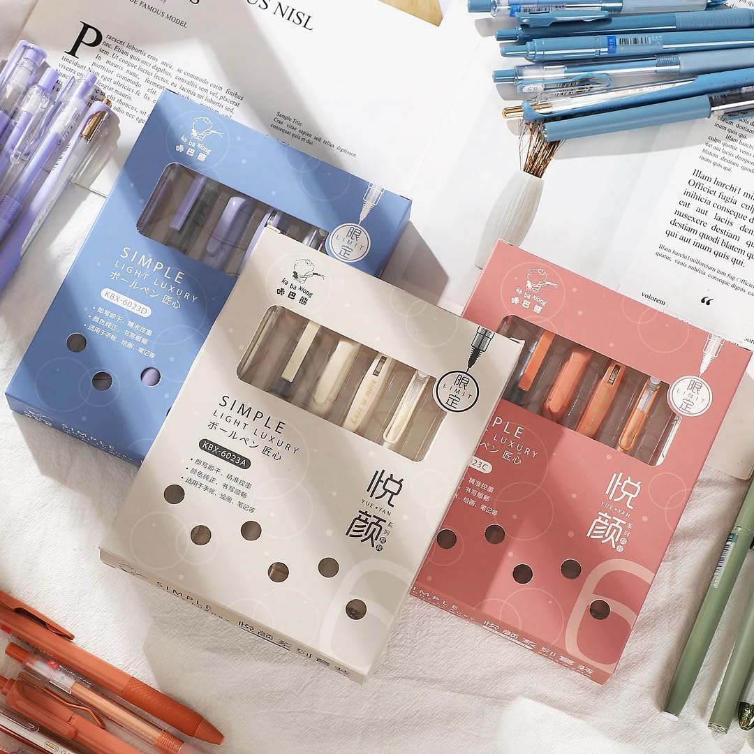 - 【Unique Design】This ink gel pen set contains 6 different styles of aesthetic pens, each pen has a different shape and appearance. The ballpoint pen adopts a retractable design and the highlighter adopts a cap design, which have character and aesthetic, allowing you to enjoy the process of writing.