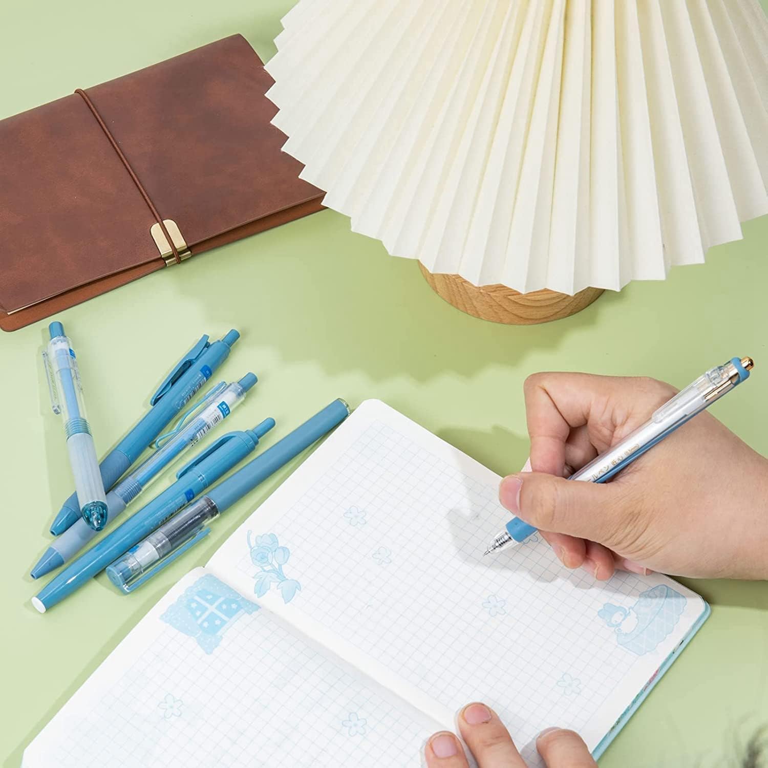 UCRAVO Pastel Gel Pens Highlighter Set, Aesthetic School Supplies 5PCS Retractable Blue Ink Pens with 1PCS Highlighter 5PCS Refills, 0.5mm Fine Points Pen for School Writing Planner Marker- BLUE