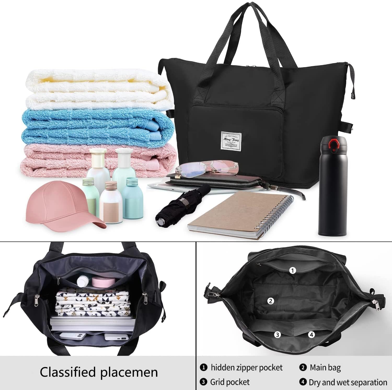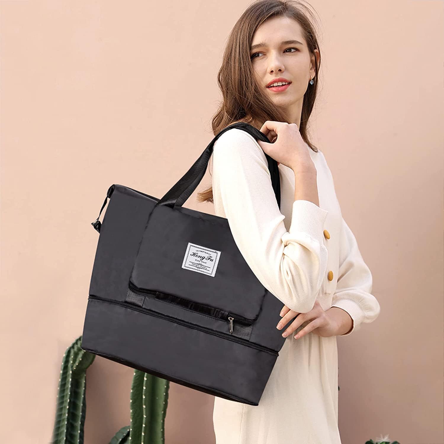 - When the luggage is too heavy, it will be an excellent shoulder overnight bag, freeing the burden of both hands. Folding the tote bag, only the size of a book.